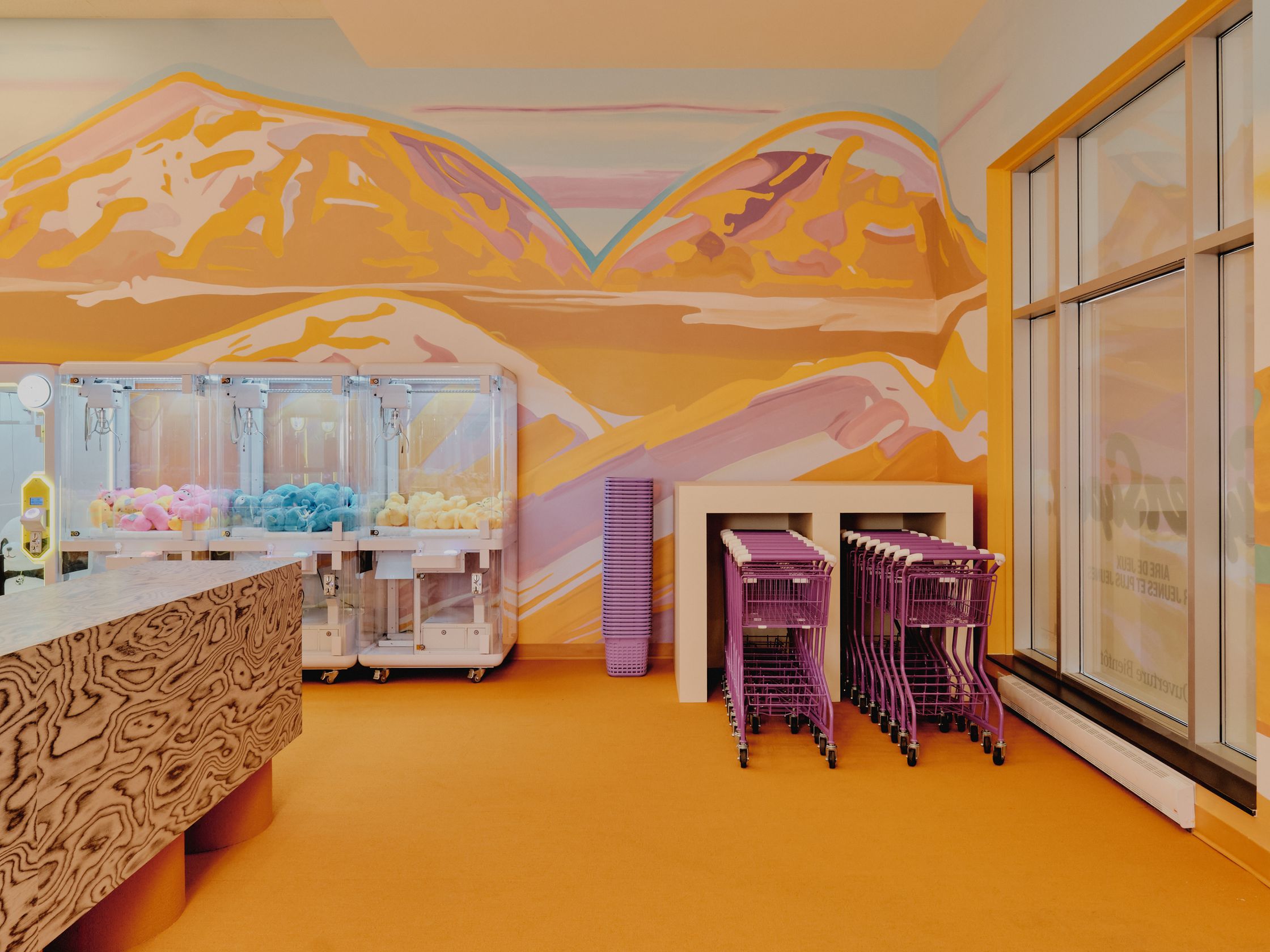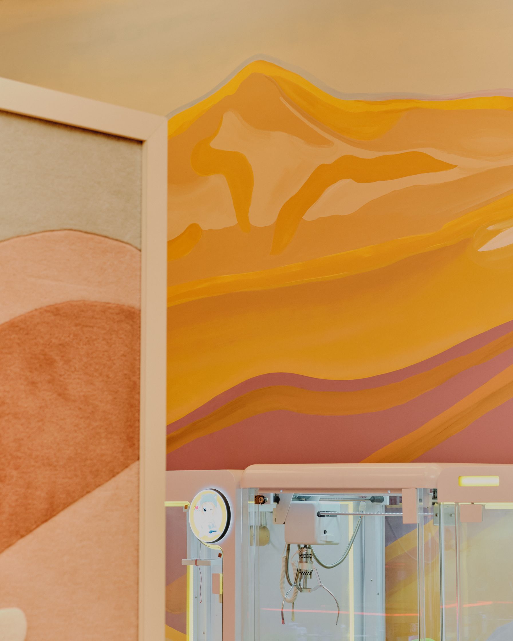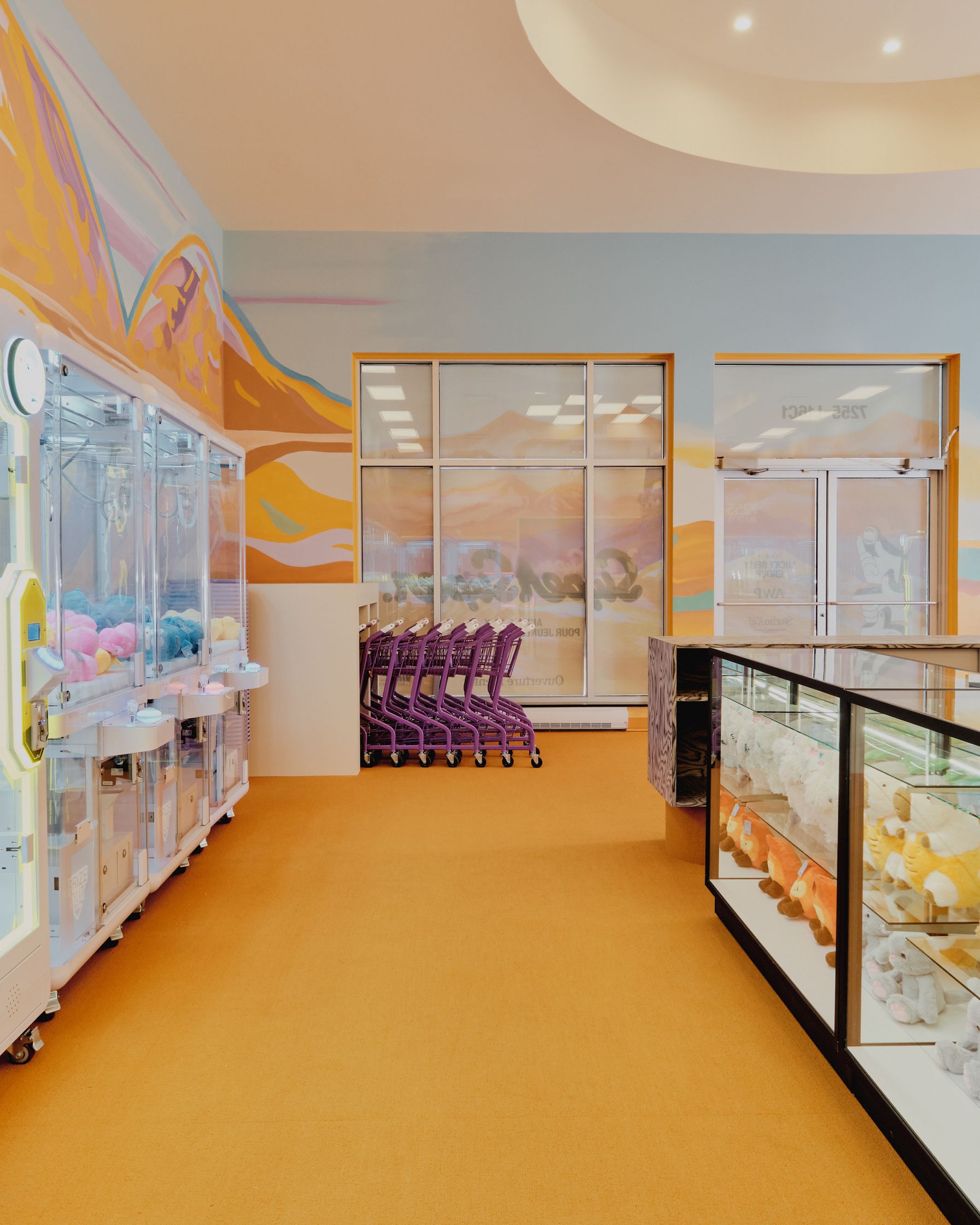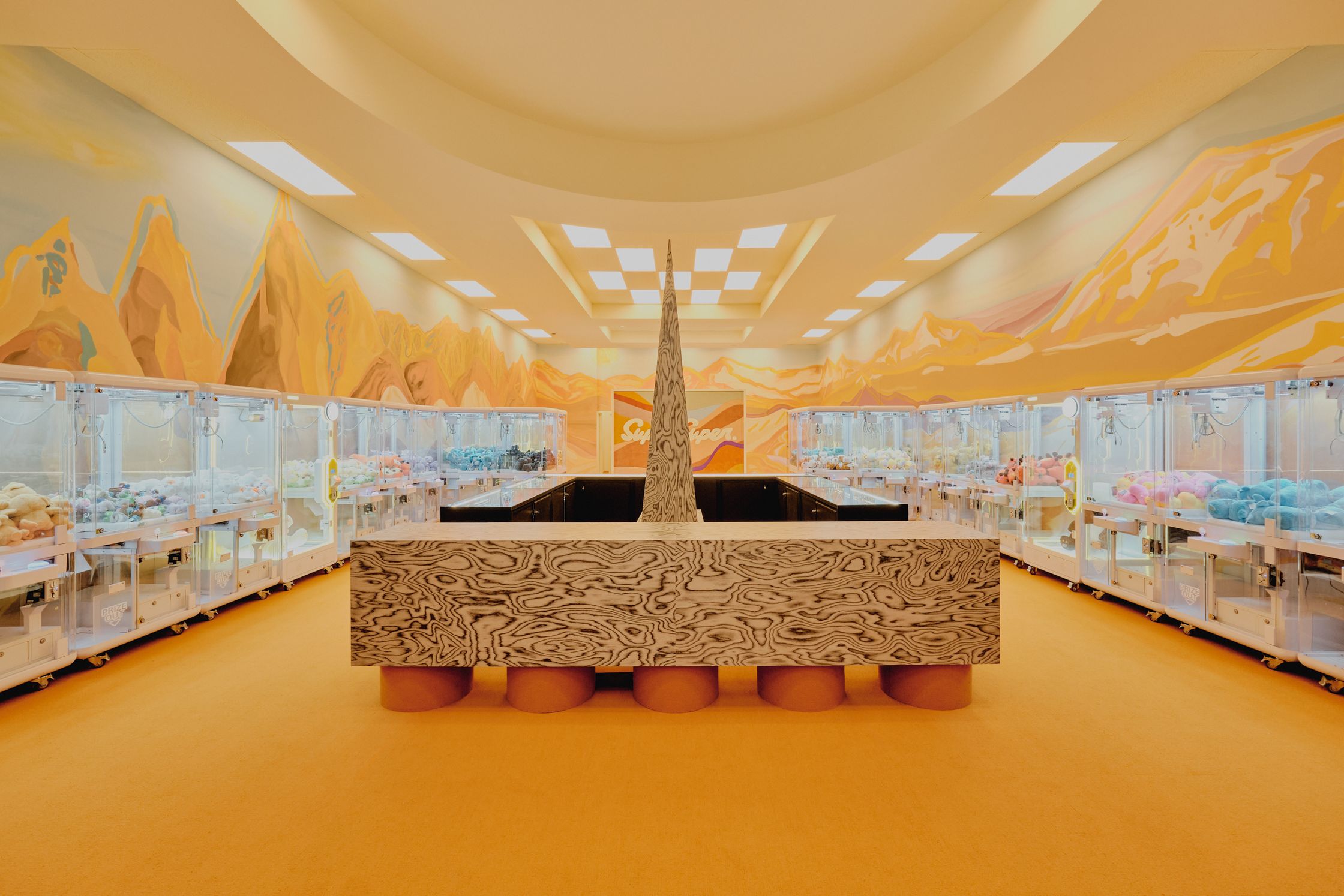 This arcade reimagines the arcade typology through an immersive lens. At its heart is a custom 360-degree mural, generated using AI tools and then hand-painted by a local artist. An experiment at the intersection of emerging technology and traditional craft. The result is a surreal environment that feels at once nostalgic and futuristic.